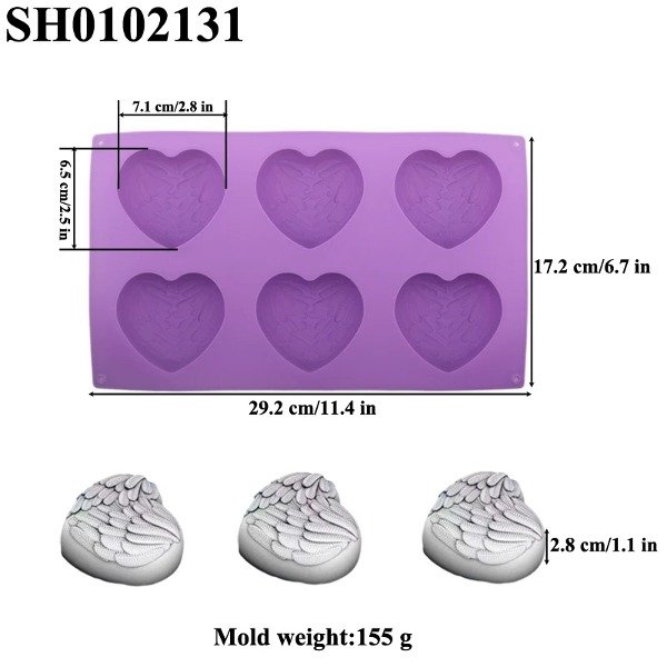Molde corazones x6 motivo alas